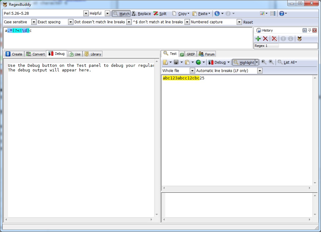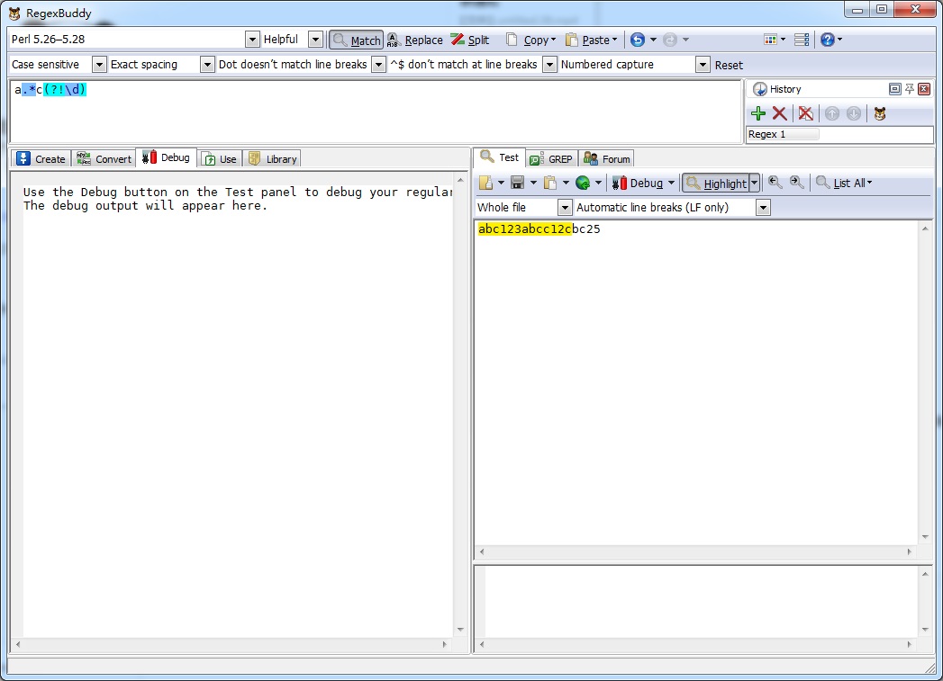 占有优先匹配,它是在贪婪匹配的基础上,所有匹配成功的字符都被消耗掉,不会再交还进行回溯。所以,等同于零宽断言。一般而言,占有优先匹配的+后不应有字符,特别是*+这个,它会消耗掉其后的所有字符元素。
